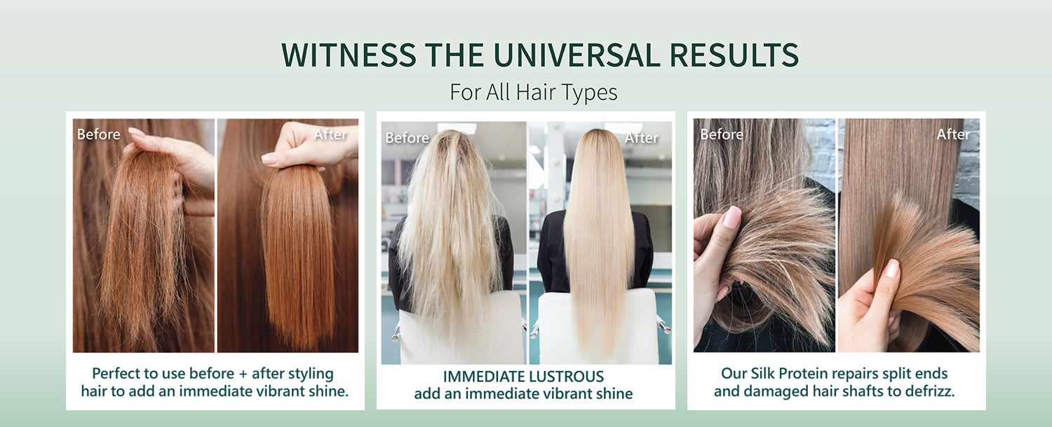 In only 10 seconds, silk protein is fully absorbed into your hair’s deepest layers. With a full spectrum of amino acids- the building blocks of hair’s structure- silk protein biomimics hair’s natural amino acids. An instant and progressive effect of strengthening and protective repair result.