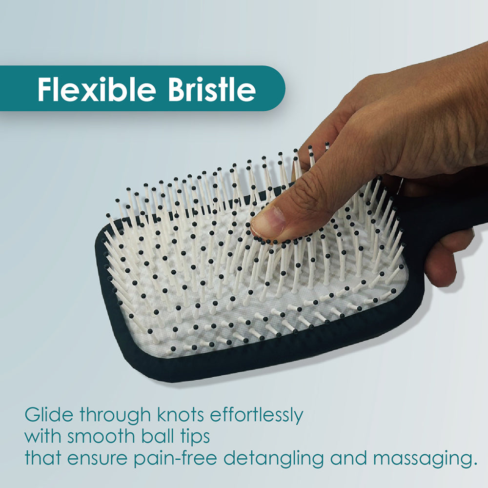 - Paddle design's larger surface area helps to detangle longer and thicker hair faster