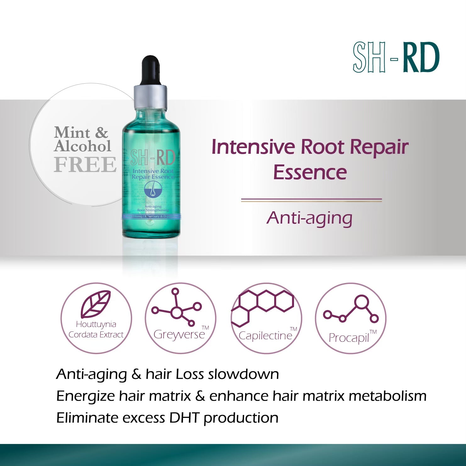 Coveted as a miracle herb, SH-RD’s rosemary extract is sourced from all-natural rosemary in France. With maximum potency, our rosemary extract increases scalp circulation and promotes hair growth while also fighting oxidation to strengthen hair.
