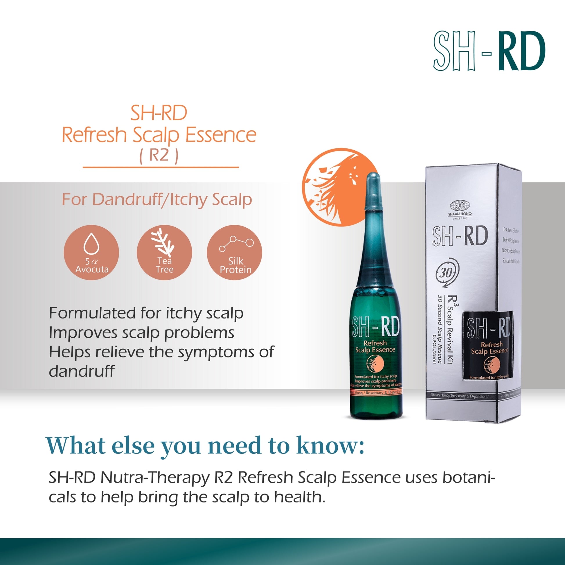 An itchy scalp results from an imbalance of scalp's oil. The Refresh Scalp Essence tackles the problem at the root, with Tea Tree Extract to help reduce oil on the scalp while also refreshing while Watercress Extract purifies and Chamomile Extract soothes. Scalp is relieved and refreshed, with hair left less greasy.